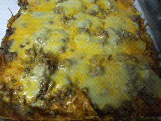 Simple to make and rather tasty enchilada casserole from Cooks.com. A colleague brought this to a work lunch potluck and I thought my family would enjoy it. Well I was partly right, 2 out of 3 kids gave it an “excellent” and “this is my favorite”. The toddler didn’t care for it, but that can be said about most of the things I make, but I try anyway. I used less cheese and 98% fat free cream of mushroom soup to make it a little lighter on the calories.